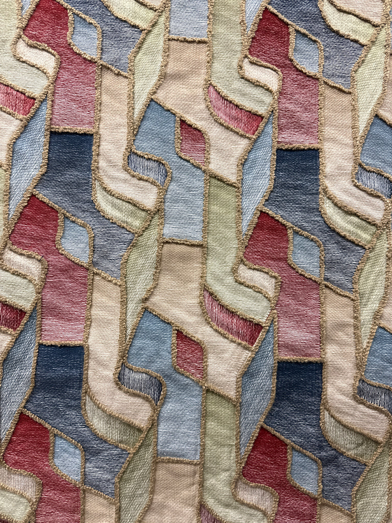 Corona is a textured fabric showcasing an elegant geometric design in warm, natural hues. Its rich surface texture brings dimension and charm, perfect for upholstery, curtains, or decorative accents. Featuring shades of clay red, sand tan, grass green, and sky blue, these colors blend seamlessly to enhance diverse interior styles, offering both lasting durability and a polished look suited for professional design projects.