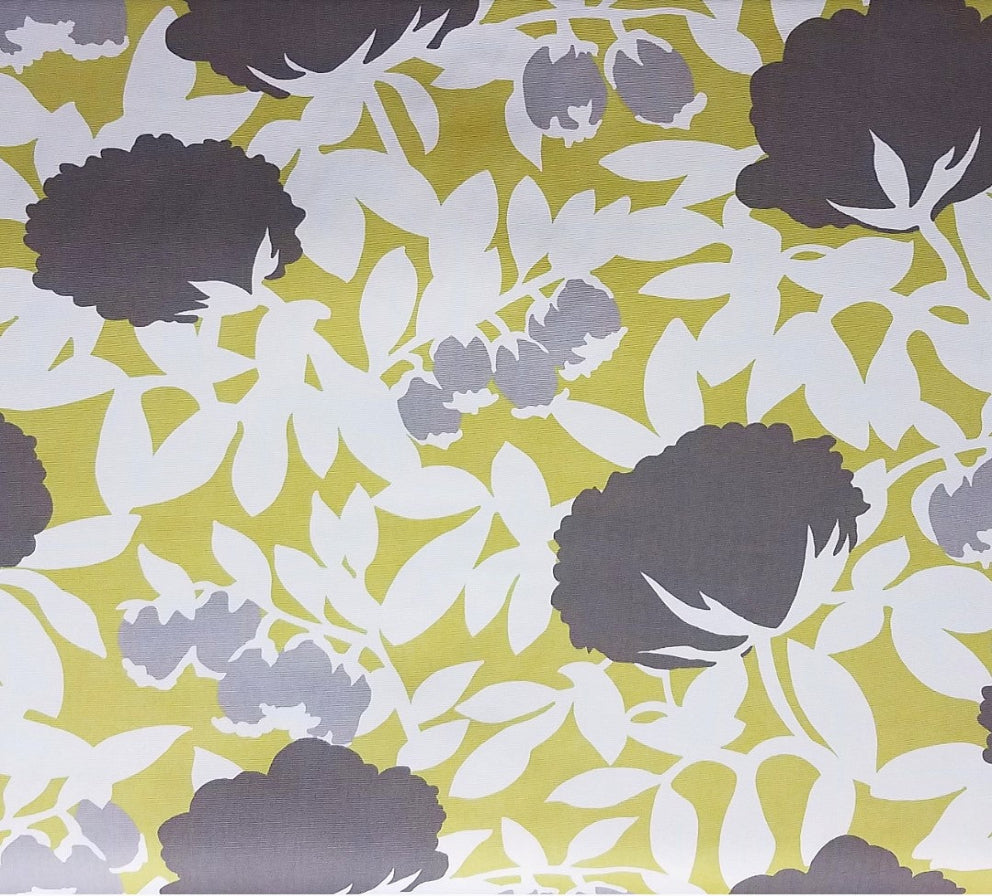 Kaasar Floral fabric showcases an elegant floral pattern with large gray and white flowers set against a vibrant yellow background. This design offers a sophisticated yet lively aesthetic, ideal for adding a touch of refined brightness to your projects. Perfect for upholstery, drapery, this fabric combines classic floral motifs with a contemporary color palette to enhance any space with expert style.