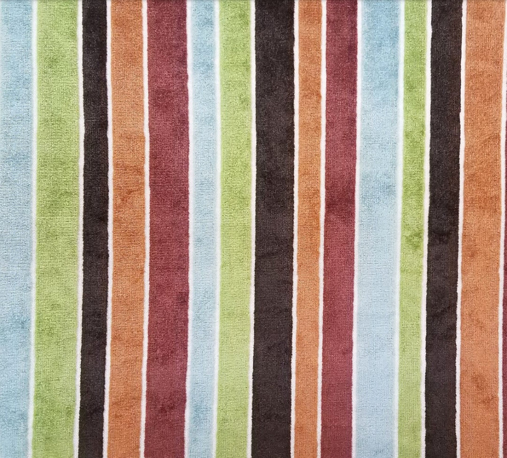 Experience the luxurious texture of Bosk Cut Velvet, featuring a vibrant striped pattern in blue, brown, green, and red. This fabric adds rich color and depth to any project, perfect for creating standout upholstery, drapery, or fashion pieces. Its soft, plush feel combined with bold hues ensures your creations will capture attention and exude elegance. Elevate your designs with Bosk Cut Velvet’s unique blend of comfort and style.