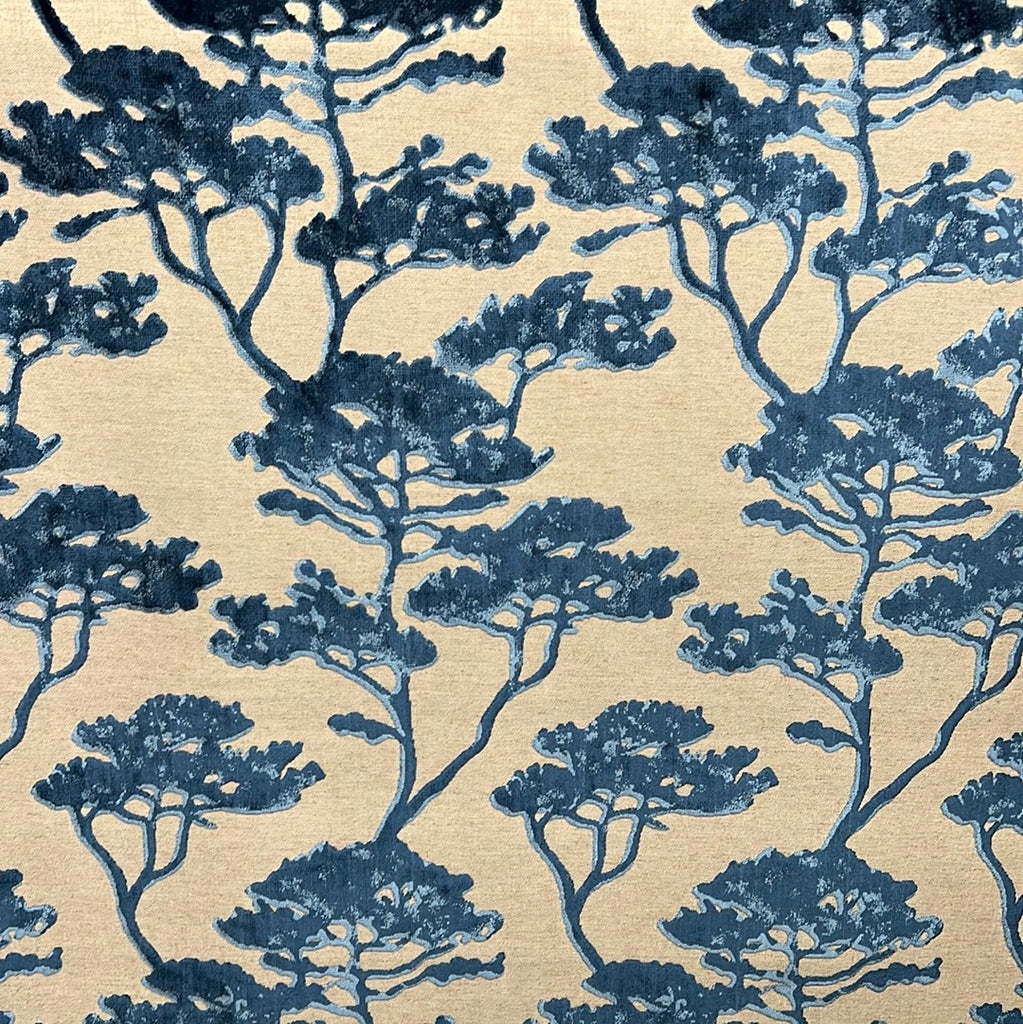 Regal fabric features an elegant pattern of intricate blue tree designs set against a warm beige background. This sophisticated combination brings a touch of nature-inspired artistry to any project, offering both visual depth and timeless charm. Ideal for upholstery, drapery, or decorative accents, Regal adds a refined and serene atmosphere to your space with its harmonious blend of color and pattern.