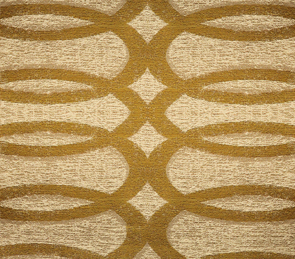 This is an oval pattern fabric in gold and white color. This fabric is Polyester and 54" wide.