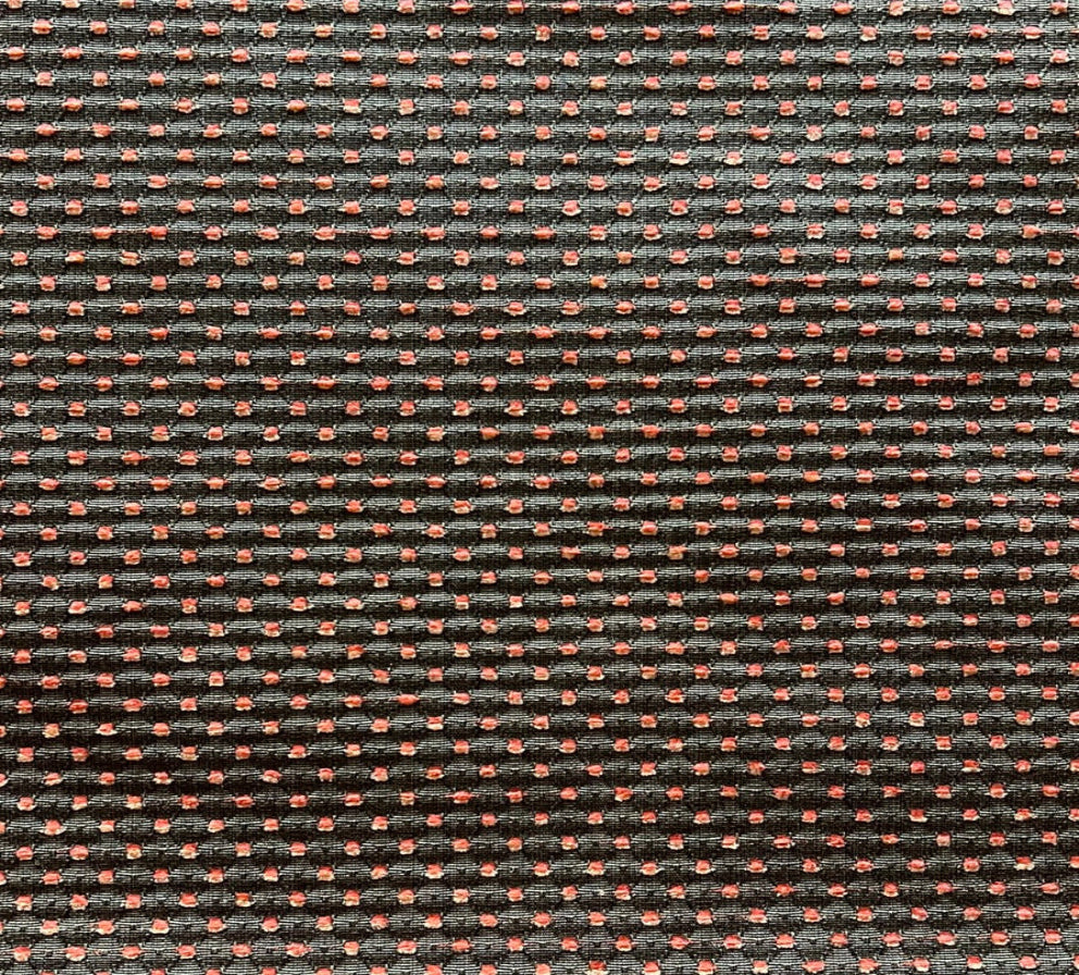 Experience the intricate beauty of "Ronnie," a fabric that captivates with its textured surface adorned by vibrant red embossed dots set against a deep black background. This striking contrast highlights the tactile dimension of the material, making it ideal for adding a bold, sophisticated accent to any design project. The raised dots not only enhance visual interest but also provide a unique sensory experience, perfect for creating standout garments or decorative pieces that demand attention.
