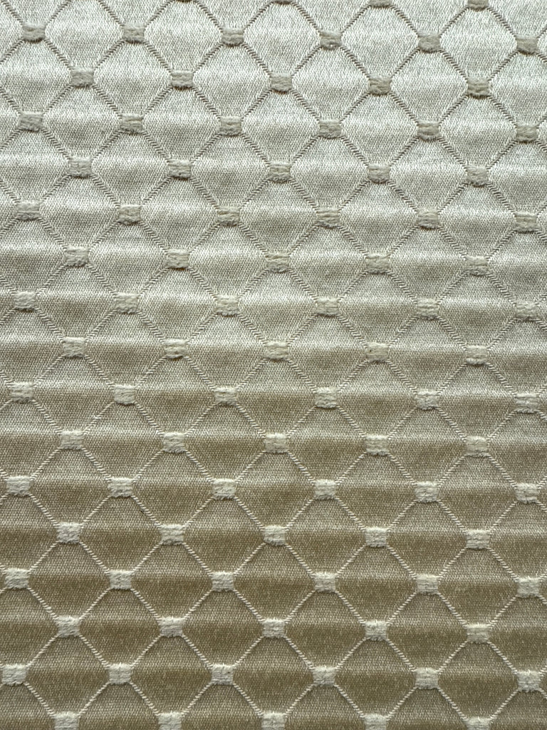 This beige textured fabric features an elegant diamond pattern, offering a sophisticated look and tactile depth. Ideal for upholstery, drapery, or fashion applications, its subtle design enhances any project with a refined, timeless appeal. The fabric’s texture adds dimension while maintaining versatility for various creative uses.